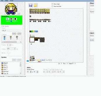 This tool computes a text file from a sprite atlas with a fixed width for each sprite. For example 16x16 sprites. The text file can be parsed and used to define sprites, sprite batches, and also animate the sprites.